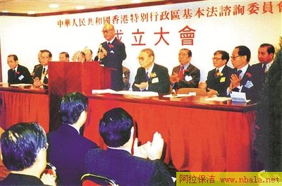 | 1985年,王寬誠(chéng)在香港特別行政區(qū)基本法咨詢委員會(huì)成立大會(huì)上致詞。 |